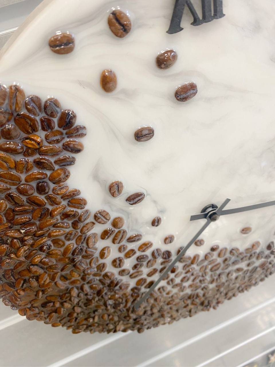 Bring the warmth and aroma of your favorite brew into your home with the Caffè Tempo Wall Clock. Designed with real coffee beans set in a smooth marble-effect background, this clock is more than just a timepiece—it’s a statement of taste. Each bean is carefully embedded, creating a flowing gradient that evokes the comfort of freshly ground coffee and the calm rhythm of time. Perfect for kitchens, cafés, or modern interiors that seek a touch of originality, this handcrafted clock combines artistry with function in a truly unique way.