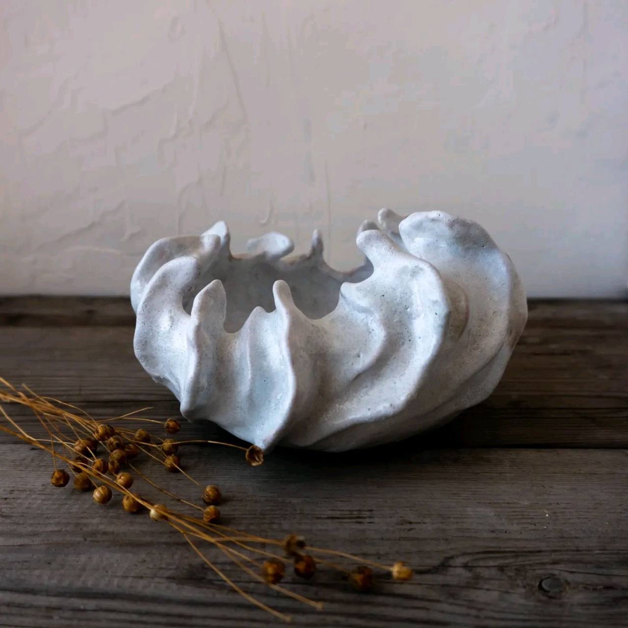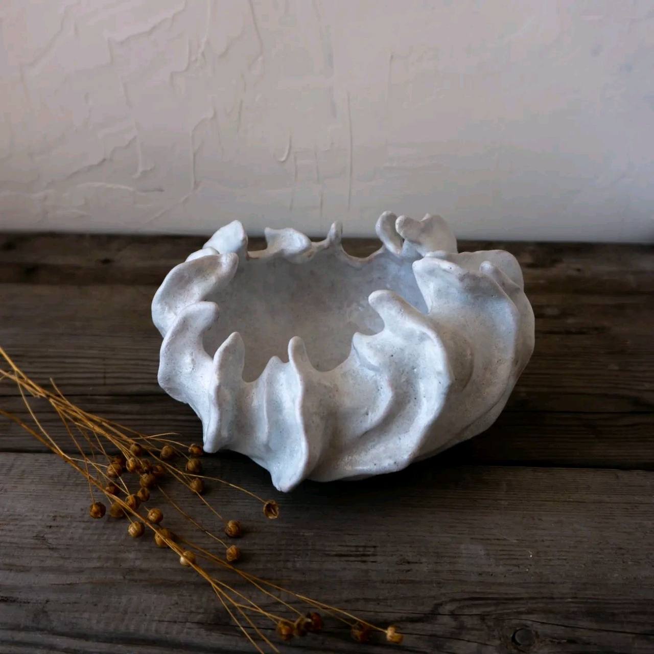 Inspired by the rhythm of waves and the organic flow of nature, the Tideform Bowl is a sculptural statement piece for the modern home. Its undulating edges resemble sea foam frozen in motion, while the raw stone-like texture enhances its artisanal character. Both decorative and functional, it can serve as a centerpiece on a dining table, an accent on a console, or a vessel for dried flowers and small objects. A true blend of contemporary design and natural elegance, this bowl invites calm and creativity into your space.